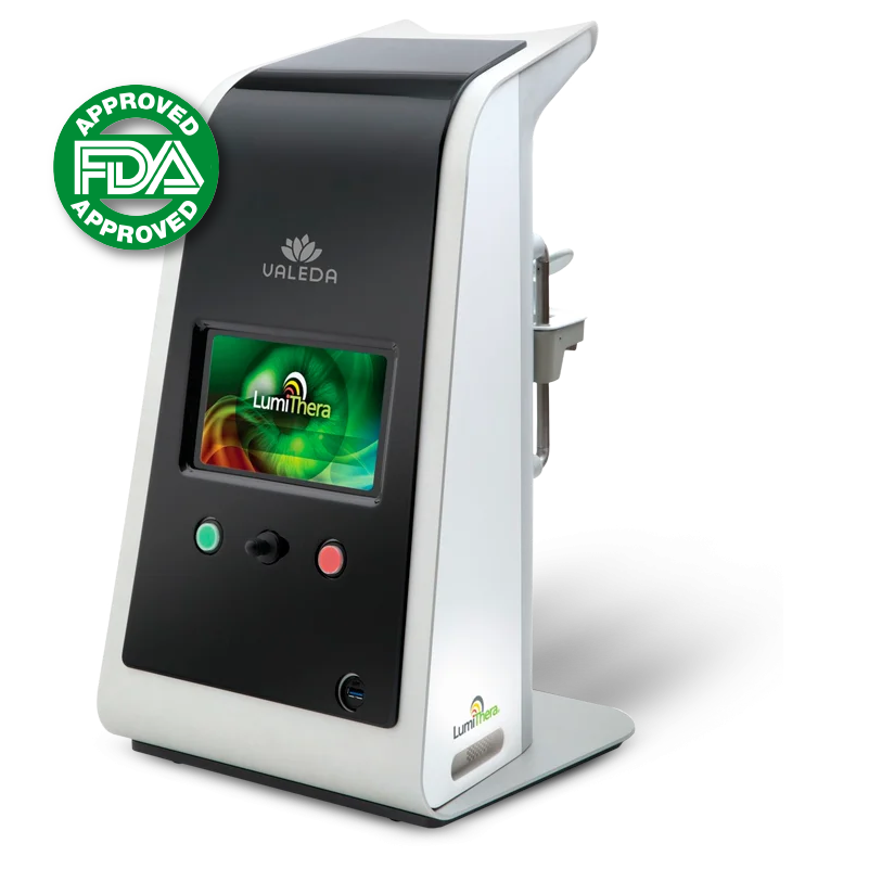 O Valeda Light Delivery System utiliza luz de baixa intensidade em três comprimentos de onda (590, 660 e 850 nm) que penetram de forma segura nas camadas da retina. Essa luz estimula as mitocôndrias das células retinianas, promovendo: